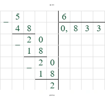 б) Для представления дроби $\frac{5}{6}$ в виде бесконечной десятичной дроби разделим 5 на 6.