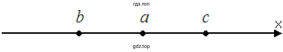 Ответ: Самая левая точка соответствует числу $b$, средняя точка — числу $a$, самая правая точка — числу $c$.