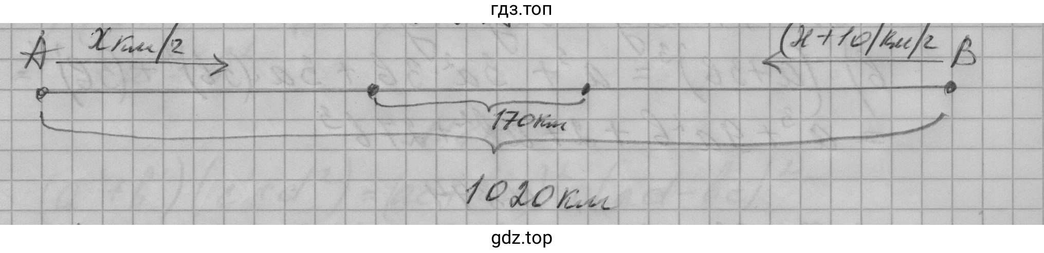 Пусть x км/ч – скорость одного поезда, тогда (x + 10) км/ч – скорость второго поезда. Зная, что через 5 ч поезда находились на расстоянии 170 км друг от друга, а расстояние между пунктами А и В 1020 км, составим и решим уравнение: